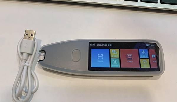 而[Blackleaf無線翻譯筆] 只需使用所附上的USB充電線,充飽電池後,按下開關就可以馬上操作[掃描翻譯],[拍照翻譯]按鍵與功能,即可完成翻譯的工作